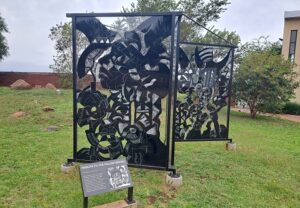Outdoors, an open-air expanse showcases a time wall, sculptures, and statues. The artists responsible for the creation of the time wall and sculptures include Stone Mabunda, Charlie Nkosi, Thabo Molapo, Lehlohonolo Mkhasibe, Lindokuhle Mkhize, Joseph Monnatlala, Simon Mthimkhulu, and Sinalo Ntuli.