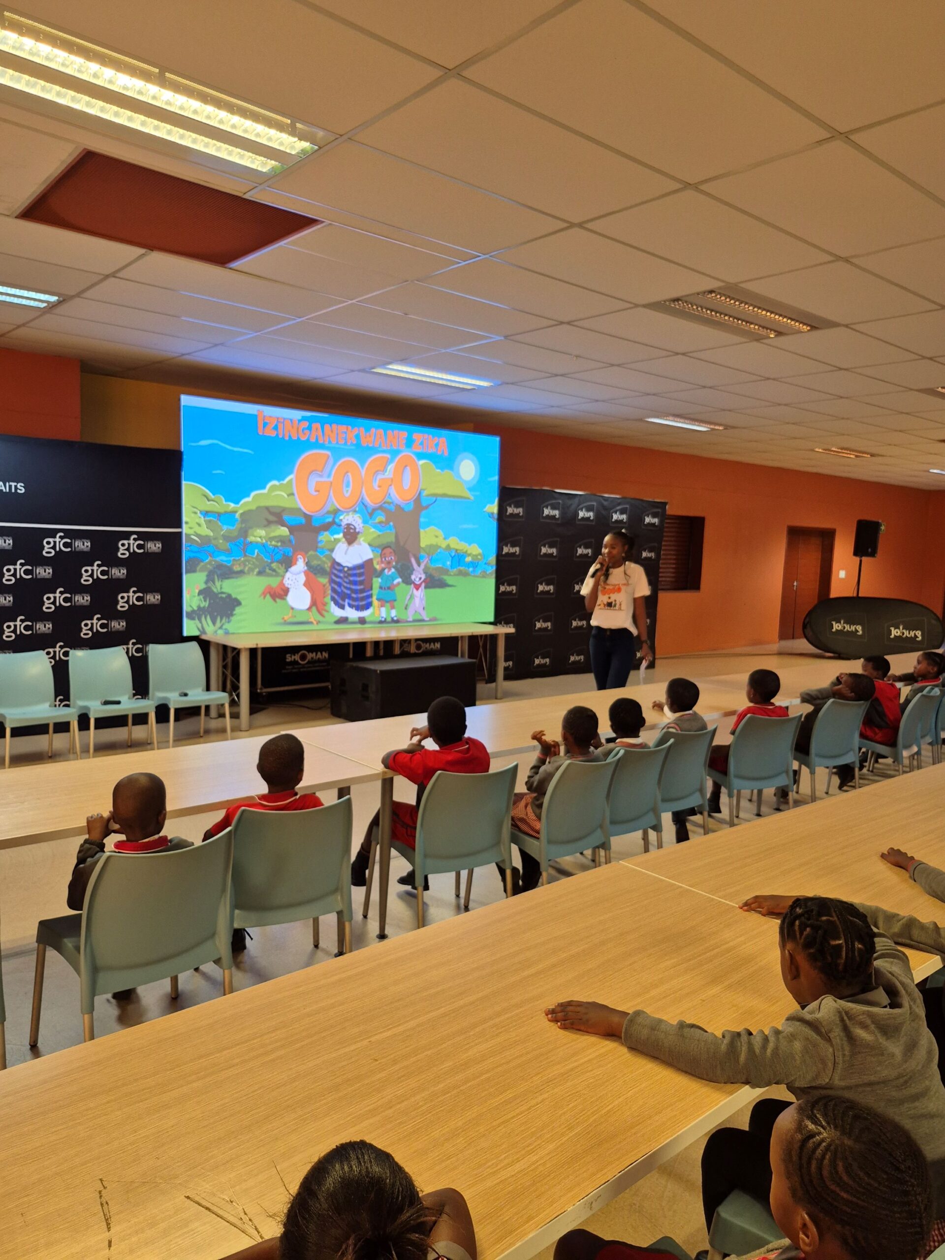 The two-day project started on Wednesday, 25 February, at Bree Primary School in Mayfair. It culminated with the Moses Kotane screening on Thursday. Grade 1, 2 and 3 learners were treated to a special programme that featured a live reading of Izinganekwane Zika Gogo, followed by a screening of the animated film, Upekwa no Nogwaja.